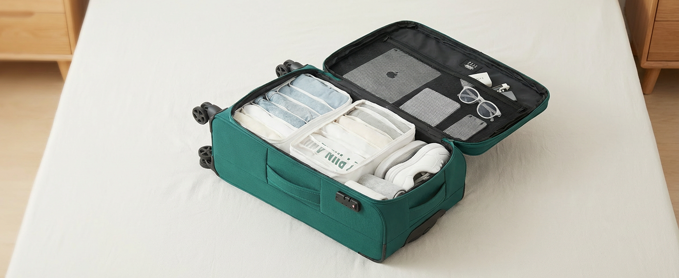 Das 3-teilige Kofferset M006 bietet Fronttaschen für schnellen Zugriff und ein verstecktes Namensschild für mehr Privatsphäre. Erweiterbares Volumen und durchdachte Innenaufteilung sorgen für Ordnung, während das TSA-Zahlenschloss Ihr Gepäck zuverlässig schützt – ideal für Geschäfts- und Privatreisen.